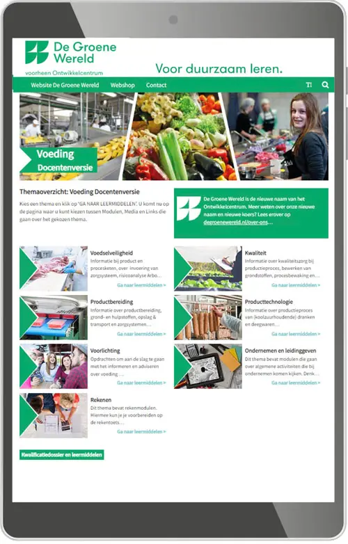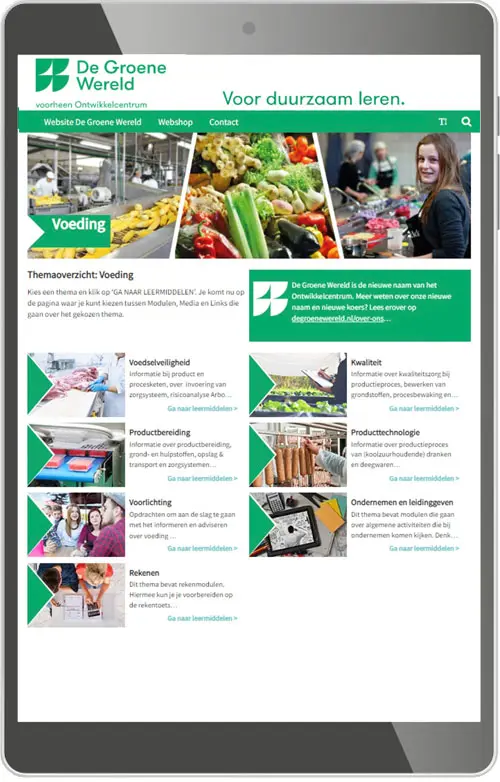 De inhoud van de Startpagina Voeding is verdeeld in de volgende thema's: