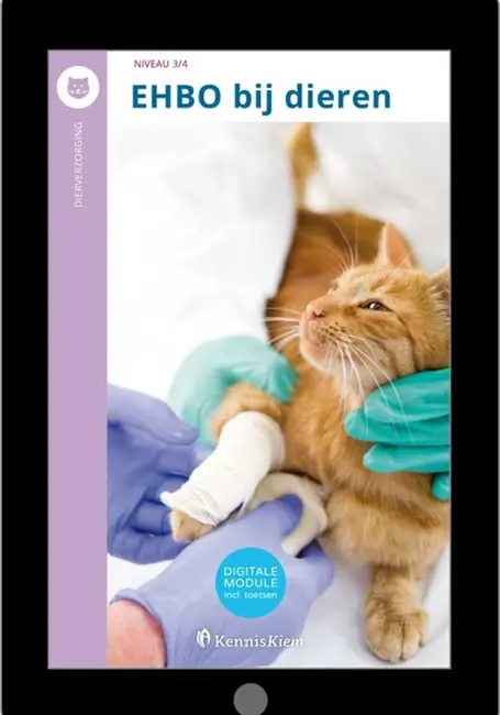 Om als dierverzorger of paraveterinair dieren professioneel te kunnen verzorgen, moet je kennis van de EHBO van dieren hebben. Je weet dan wat je zelf wel of juist niet moet doen voor een hulpbehoevend dier. De digitale module EHBO bij dieren* gaat over Eerste Hulp Bij Ongelukken bij dieren. Je leert hoe je een eerste spoedonderzoek doet en daarna naar specifieke letsels kijkt. Bij spoedgevallen met bloedingen, wonden of botbreuken moet je verband kunnen aanleggen en daarbij de juiste verbandmiddelen gebruiken. Maar een dier kan ook een epileptische toeval hebben of vergiftigd zijn. Ook dan moet je op de juiste manier kunnen handelen.