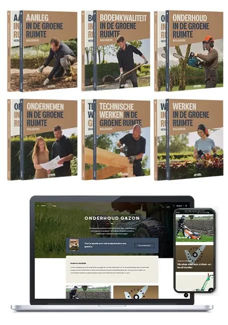 Bij de start van je opleiding schaf je het startpakket voor jouw opleiding aan (€ 375,-). Daarmee beschik je direct over alle 6 naslagwerken en bijbehorende werkboeken voor de volledige opleiding! Daarnaast ontvang je een jaarlicentie die jou het eerste jaar toegang geeft tot de online leeromgeving, de Startpagina Groene ruimte én de plantenapp Linneaus.